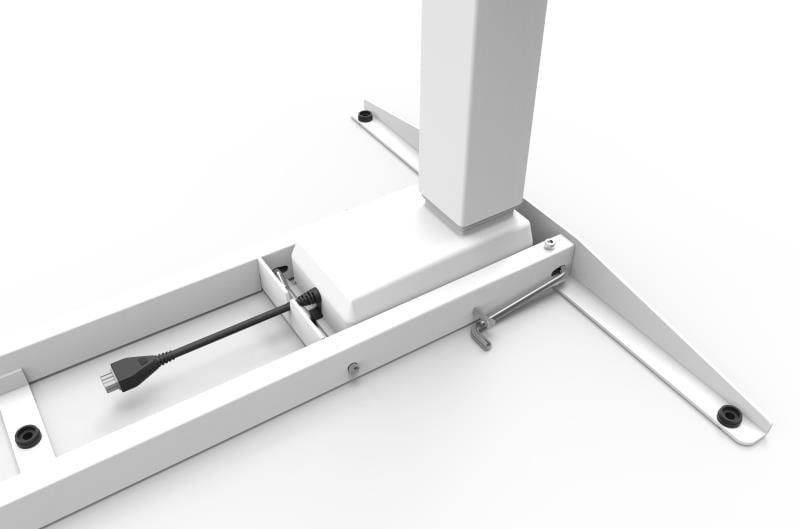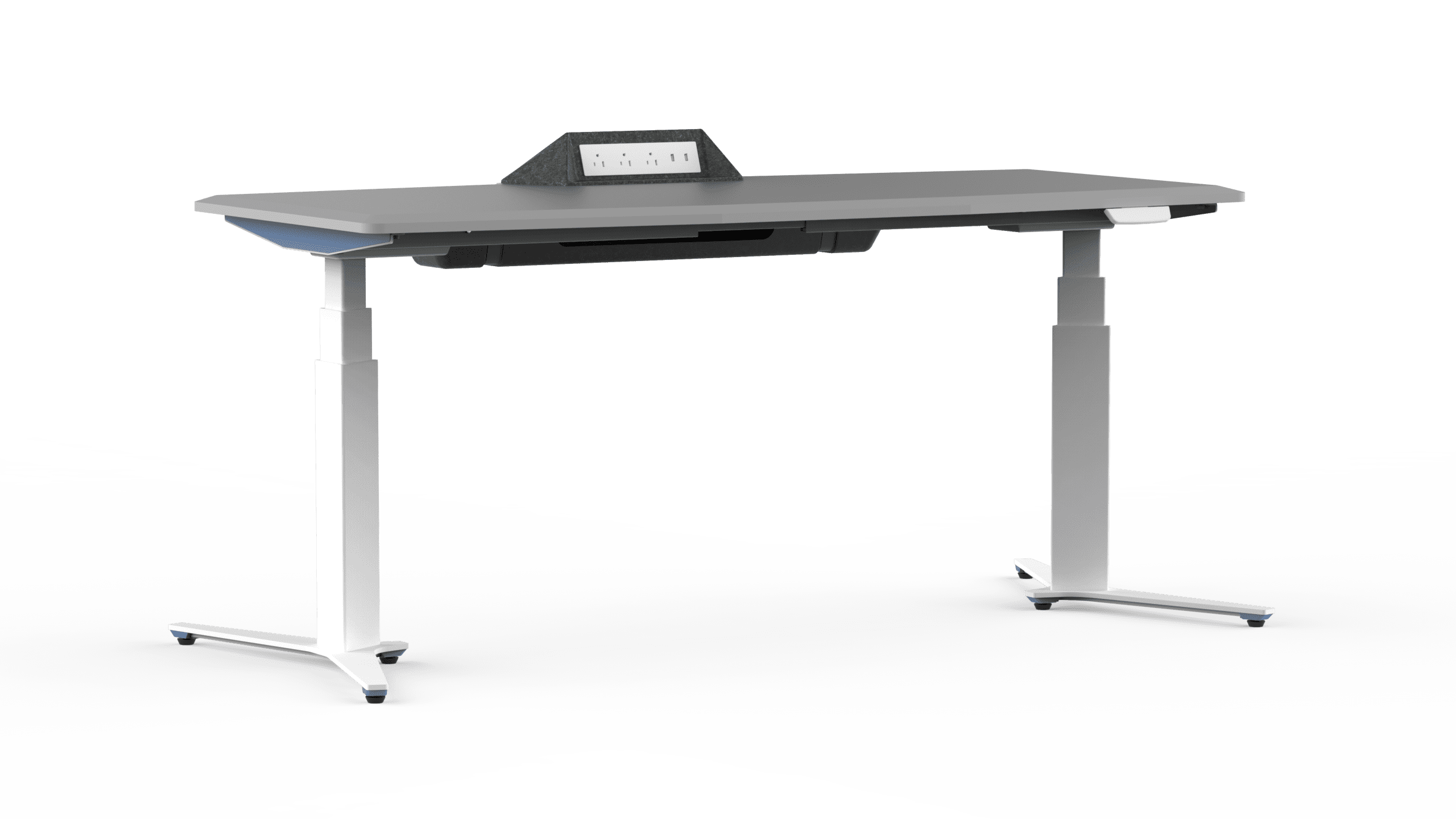 A cleaner way to hide cables without compromising the design of the desk. The scissor-shaped cord manager moves seamlessly as the user adjusts the desk. The top cable tray easily clicks into the tabletop, while providing the option for tabletop power.