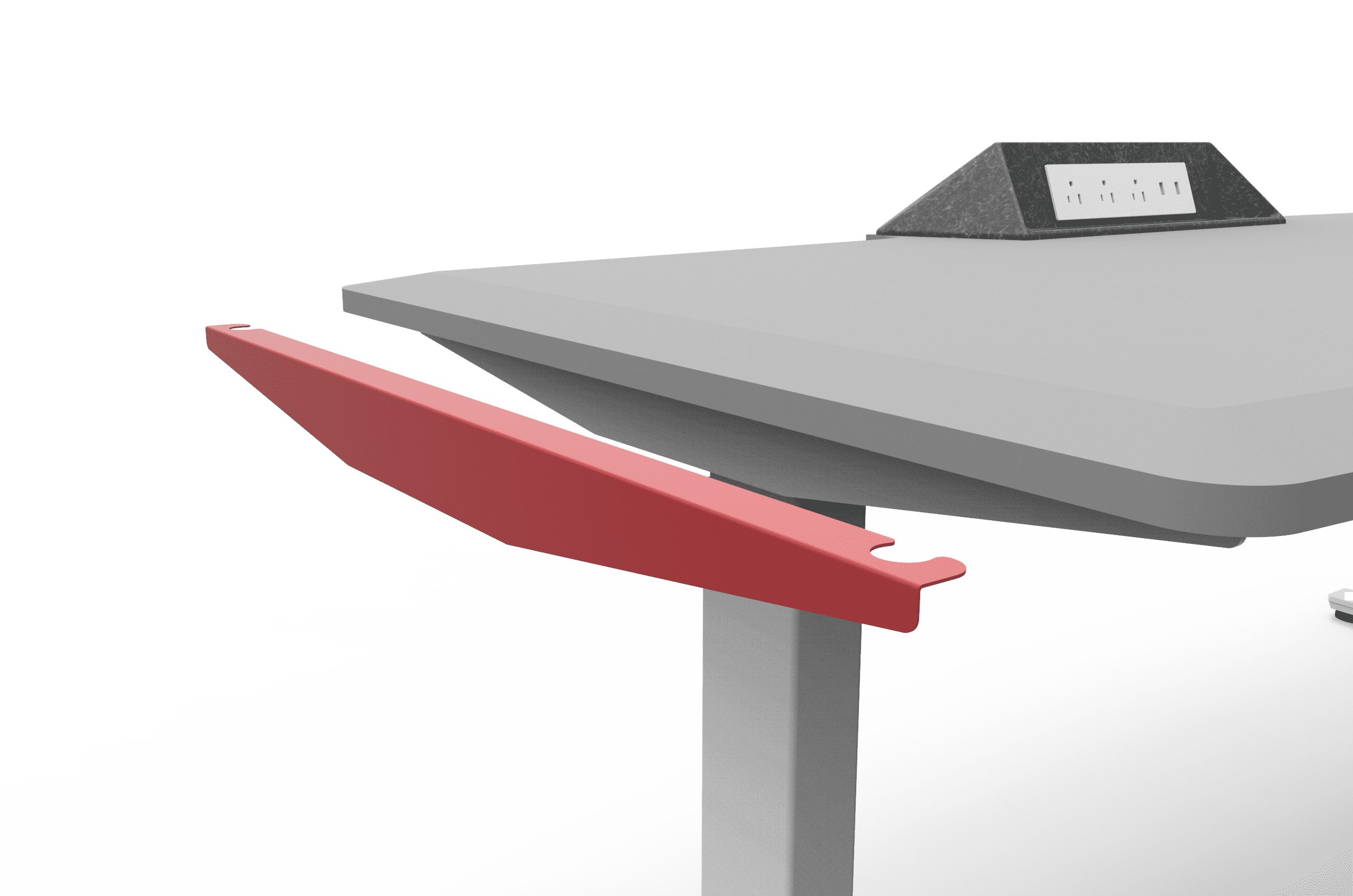 A cleaner way to hide cables without compromising the design of the desk. The scissor-shaped cord manager moves seamlessly as the user adjusts the desk. The top cable tray easily clicks into the tabletop, while providing the option for tabletop power.