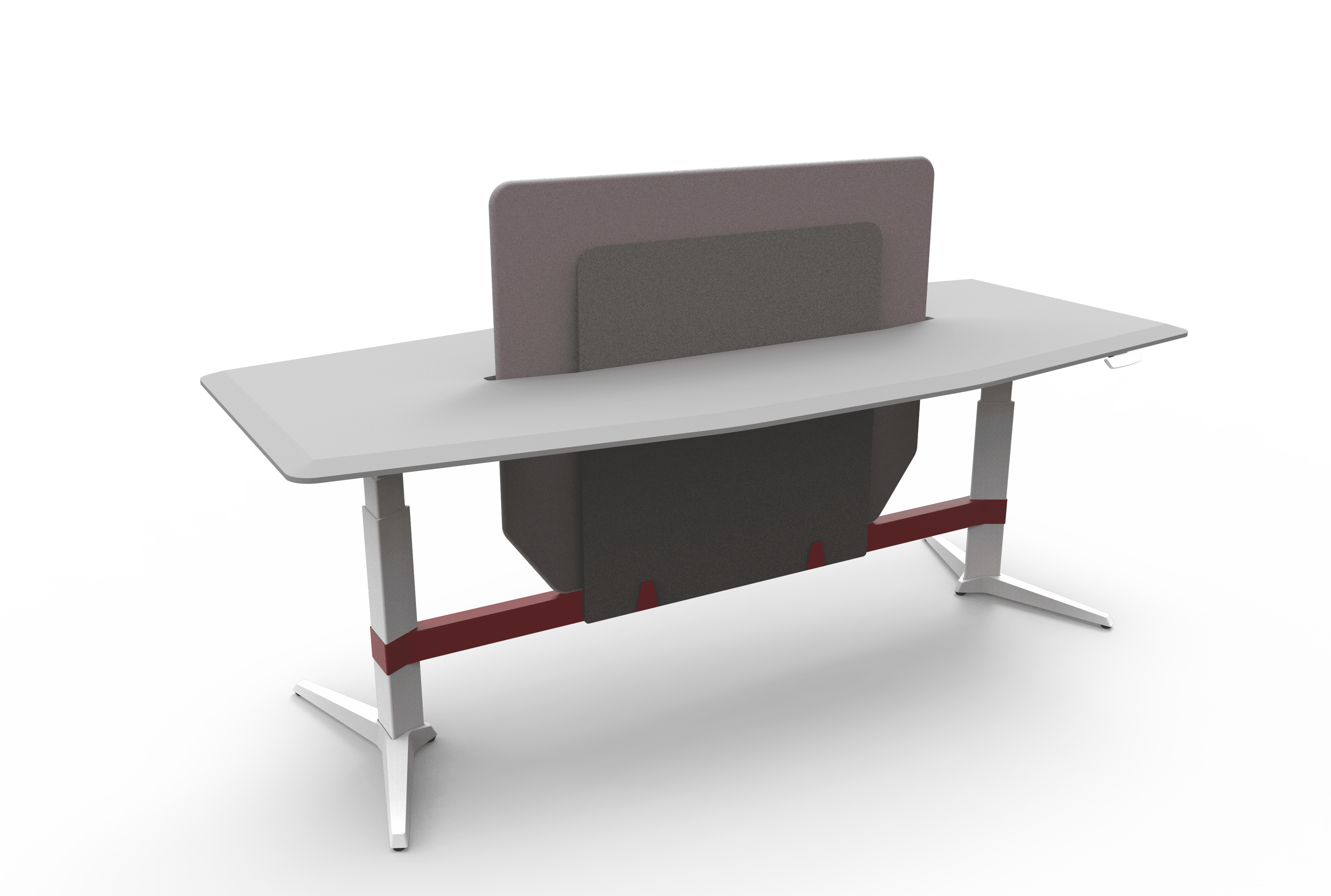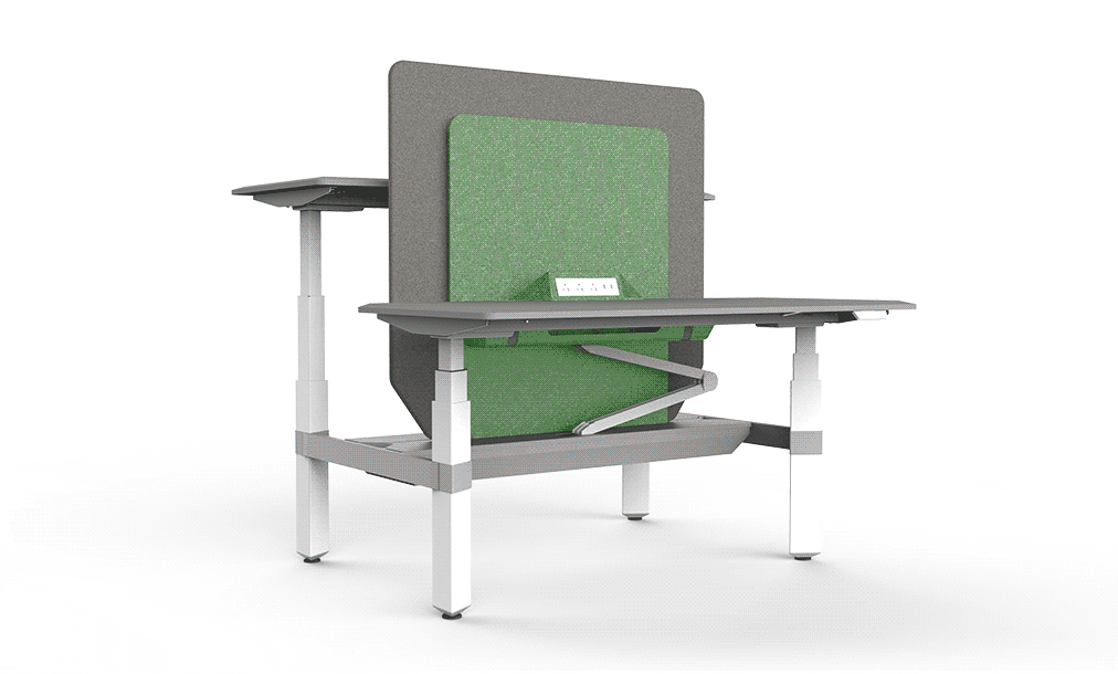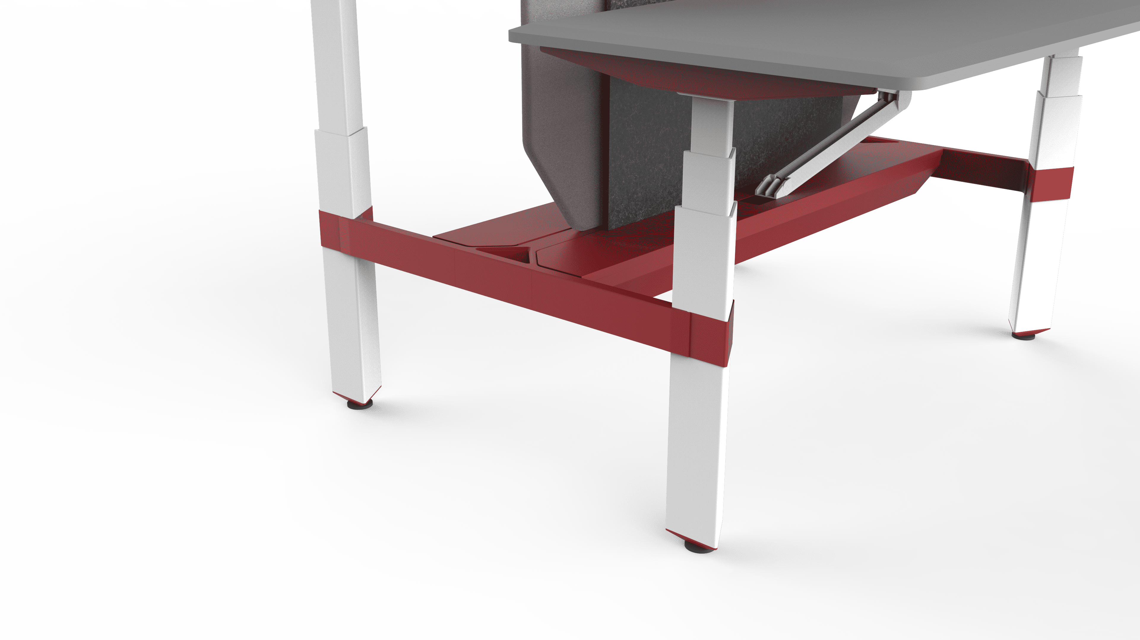 A cleaner way to hide cables without compromising the design of the desk. The scissor-shaped cord manager moves seamlessly as the user adjusts the desk. The top cable tray easily clicks into the tabletop, while providing the option for tabletop power.